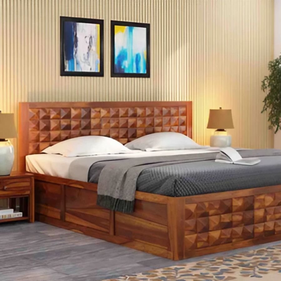 The Walmas Queen Box Storage Bed-Teak